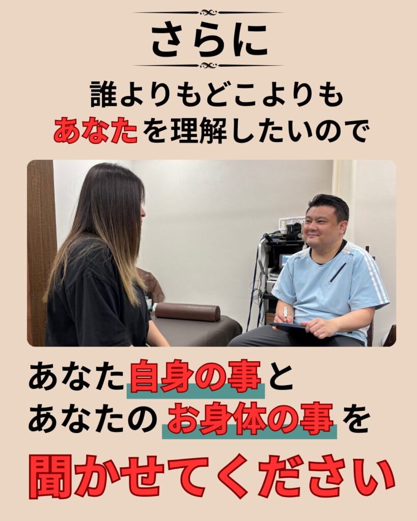 とことんあなたの悩みを解決するために毎回本気の施術を行っております。