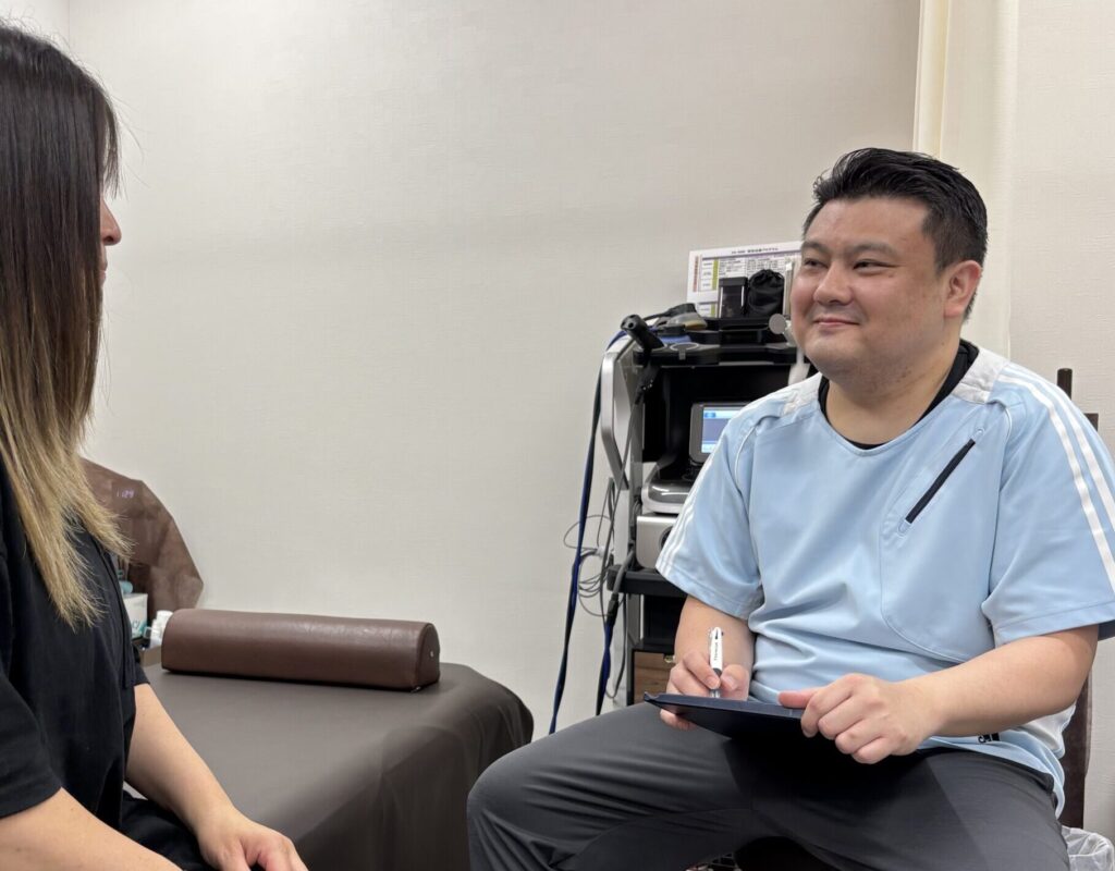 記入していただいた問診票をもとに、お悩みの腰痛について「どこが、どのように、いつ頃から痛むのか」という根本原因を探していきます。
