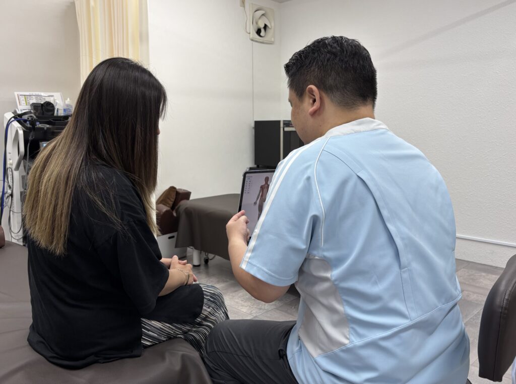 バキバキ鳴らすようなこともなく、痛みはなく、安心して受けていただけます。施術しながら、体の悪い部位も共有しながら、説明しながら一個一個丁寧に施術を進めますので、安心して施術が進められます。